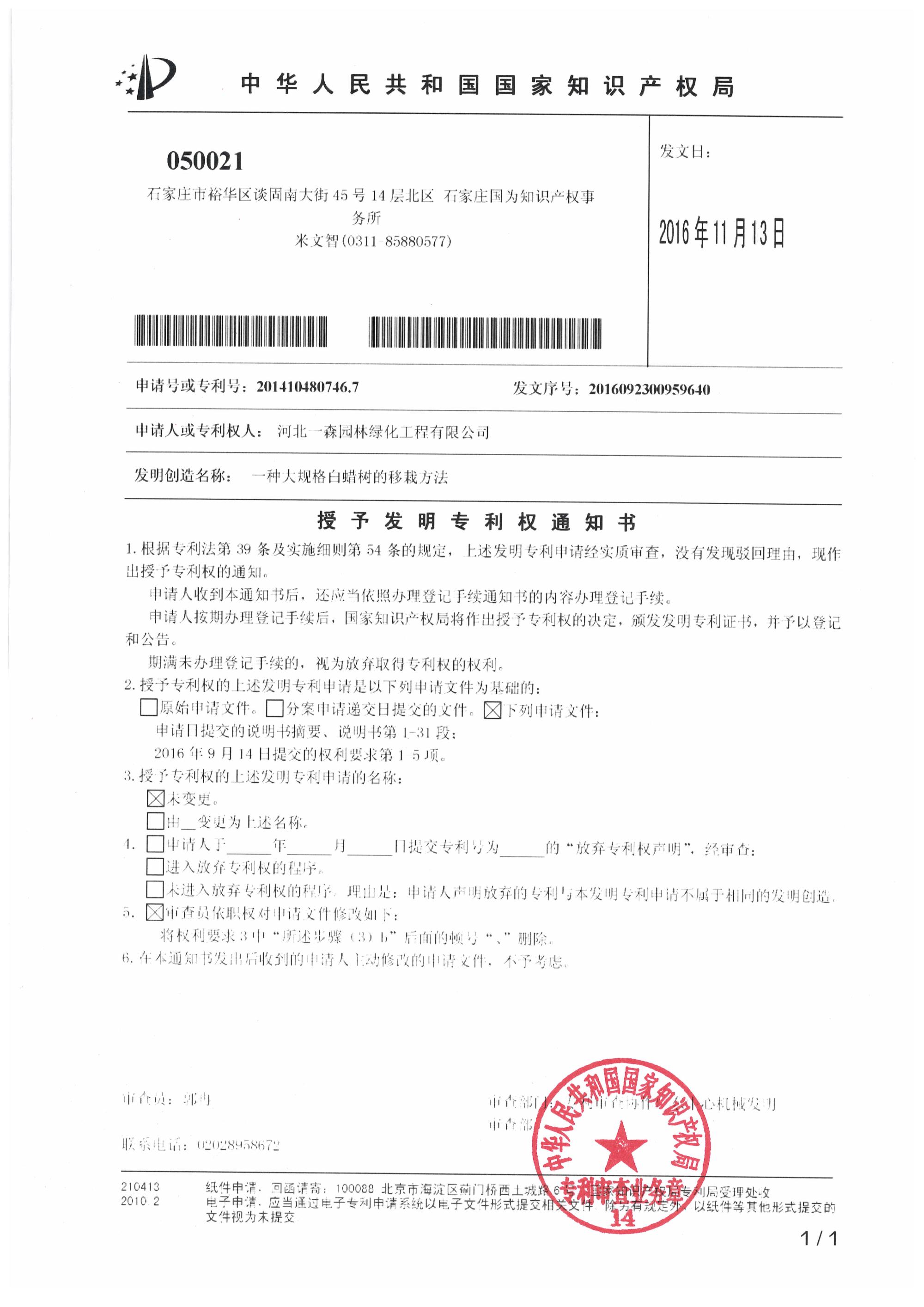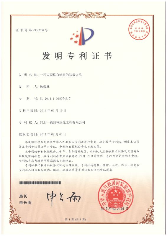 “一種大規(guī)格白蠟樹的移栽方法”發(fā)明專利