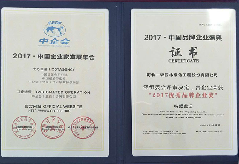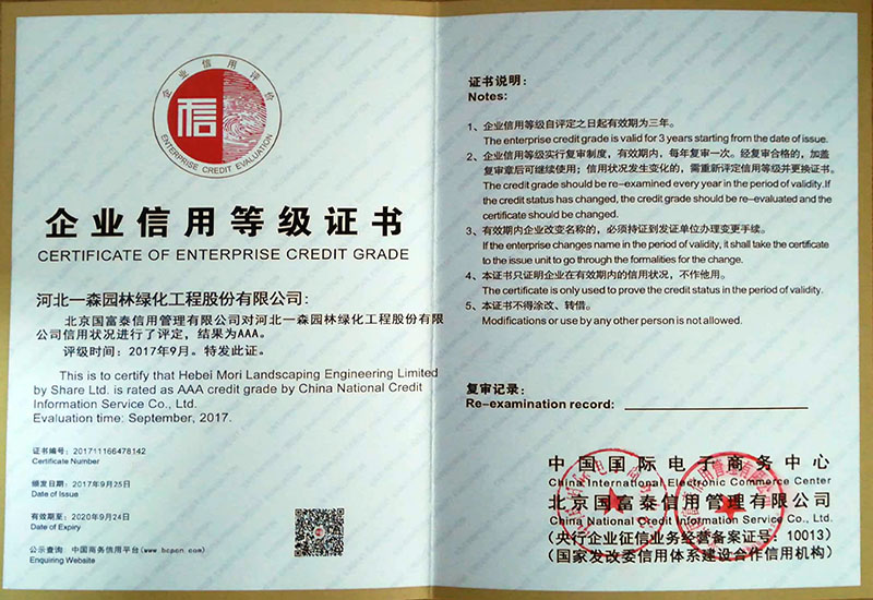 河北省城市園林綠化行業(yè)4A級誠信企業(yè)
